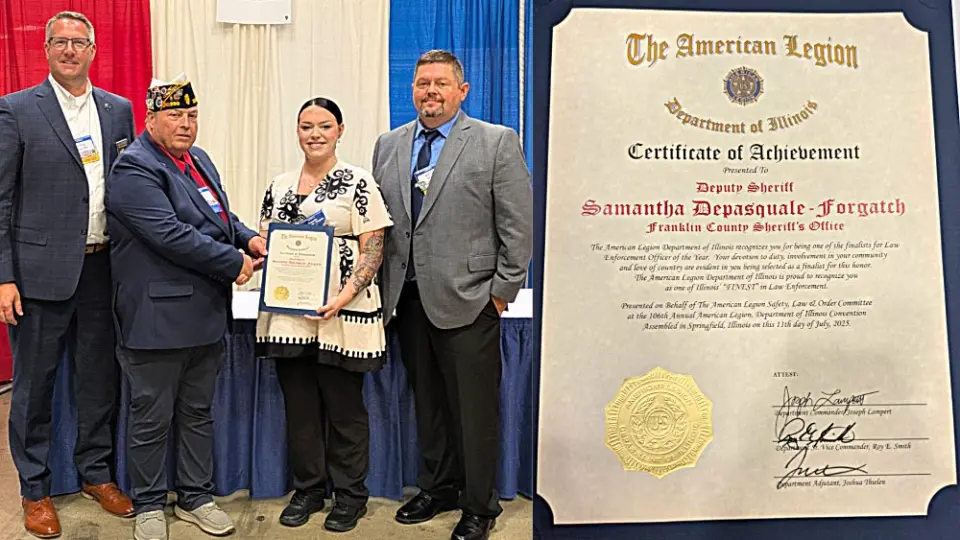 SPRINGFIELD – Franklin County Sheriff’s Deputy Samantha Forgatch was recognized at the American Legion, Department of Illinois, 106th Annual Convention in Springfield Friday.