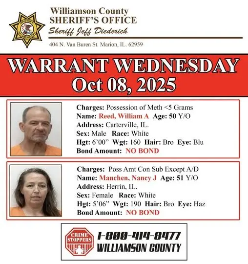 If you have any information about their whereabouts, call the sheriff’s office at 618-997-6541 or “Submit A Tip” on the Williamson County Sheriff’s App.