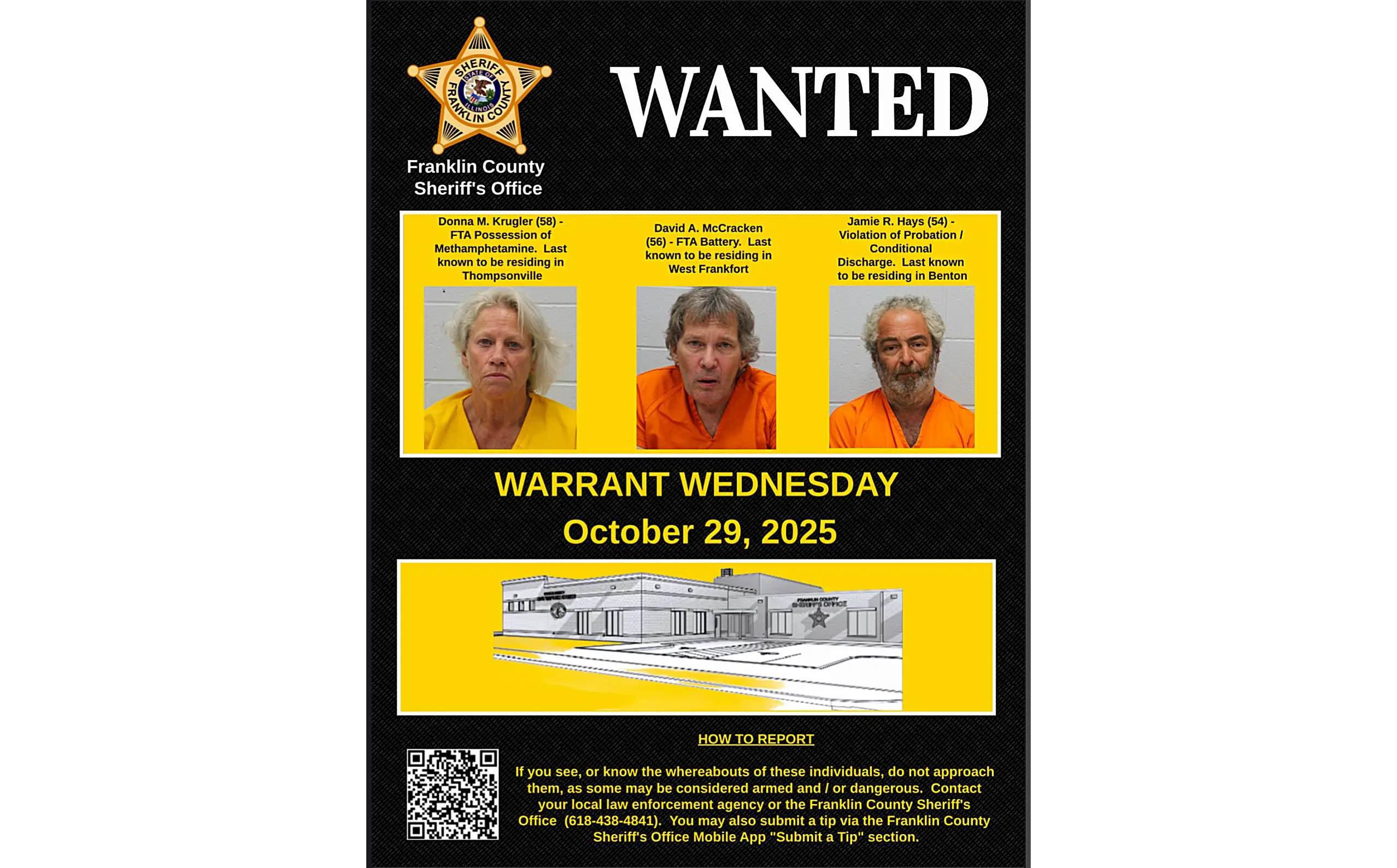 BENTON – Franklin County Sheriff Kyle Bacon is looking for these individuals shown below who are wanted for various crimes.