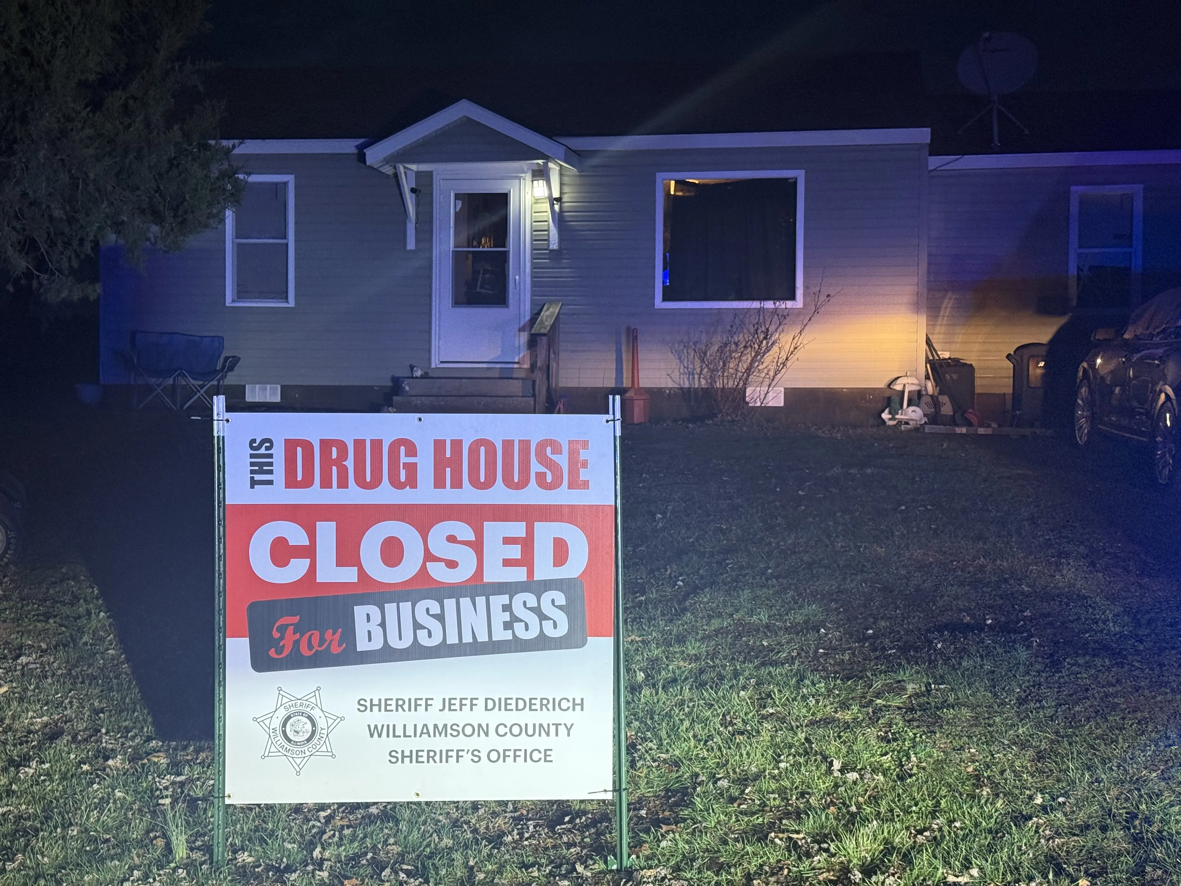 Williamson County, Illinois – On March 5, 2026, at approximately 1736 hours, Deputies with the Williamson County Sheriff’s Office executed a court authorized search warrant at a residence located in the 9100 block of Maneese Lane in rural Williamson County.